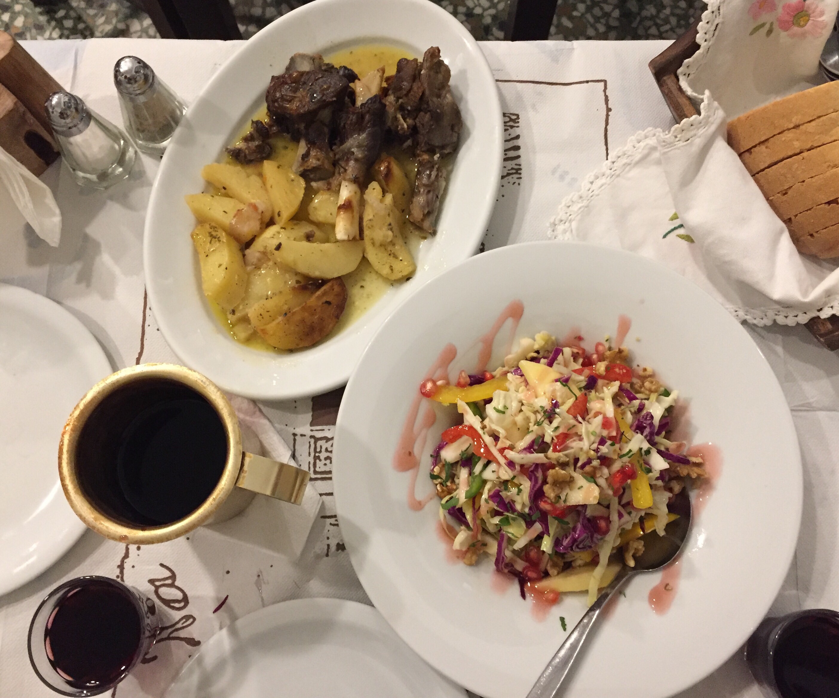 We had a memorable dinner at Archontoula in Plaka, where we also watched the sun set (sunset was first and dinner second, but sunset photos are a better blog post ending, so here’s our dinner!)