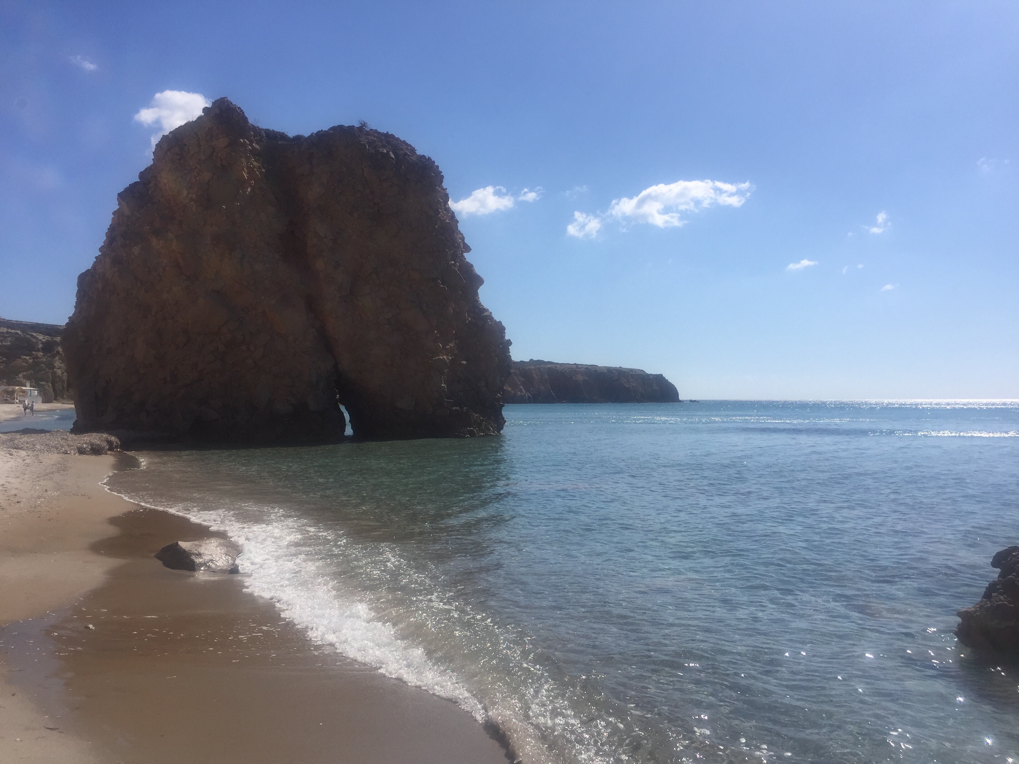 If you decide to visit Milos (which I highly recommend you do, unless you’re the cruise-ship-group-tour type of person, in which case I recommend you don’t!), Andrew and I have a few pieces of advice for you. 1) Rent a car. The buses come once every two hours, and things are too far apart to walk, plus there are no sidewalks. 2) Don’t try to drive in any residential-looking areas! Even if a detour or Google Maps takes you there. Those roads are narrow and scary and we experienced the first true relationship test of our marriage while stuck in their labyrinthine coils (we passed, don’t worry). 3) If at all possible, try to stay at Lithos Luxury Rooms, because it’s run by the friendliest, most wonderful people, there are sheep grazing nearby and this creates a rustic, relaxing atmosphere, and there is a breakfast buffet situation that looks like this, but with different dishes each day: