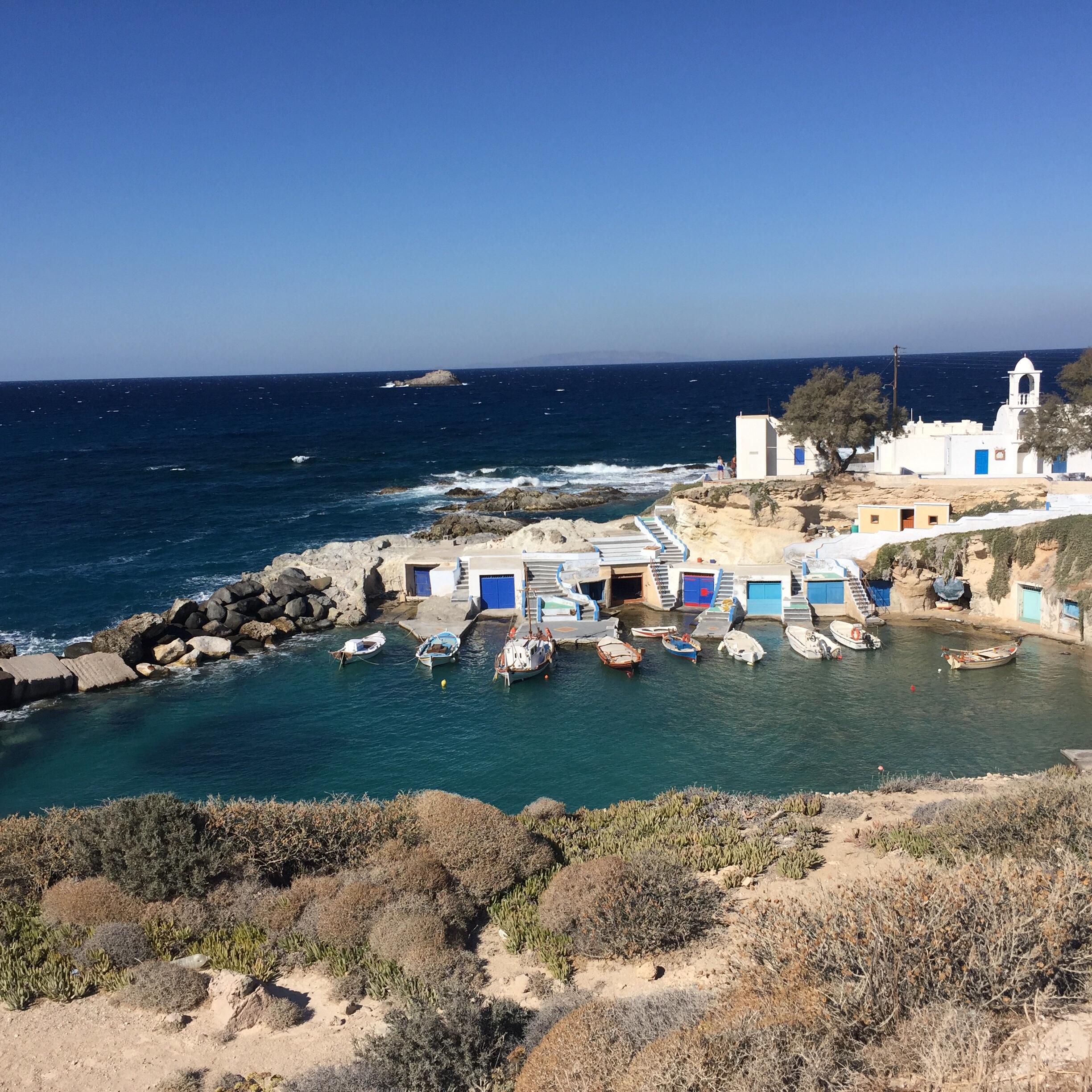 For lunch we visited the picturesque Mandrakia Beach with its colorful boat garages (syrmata):