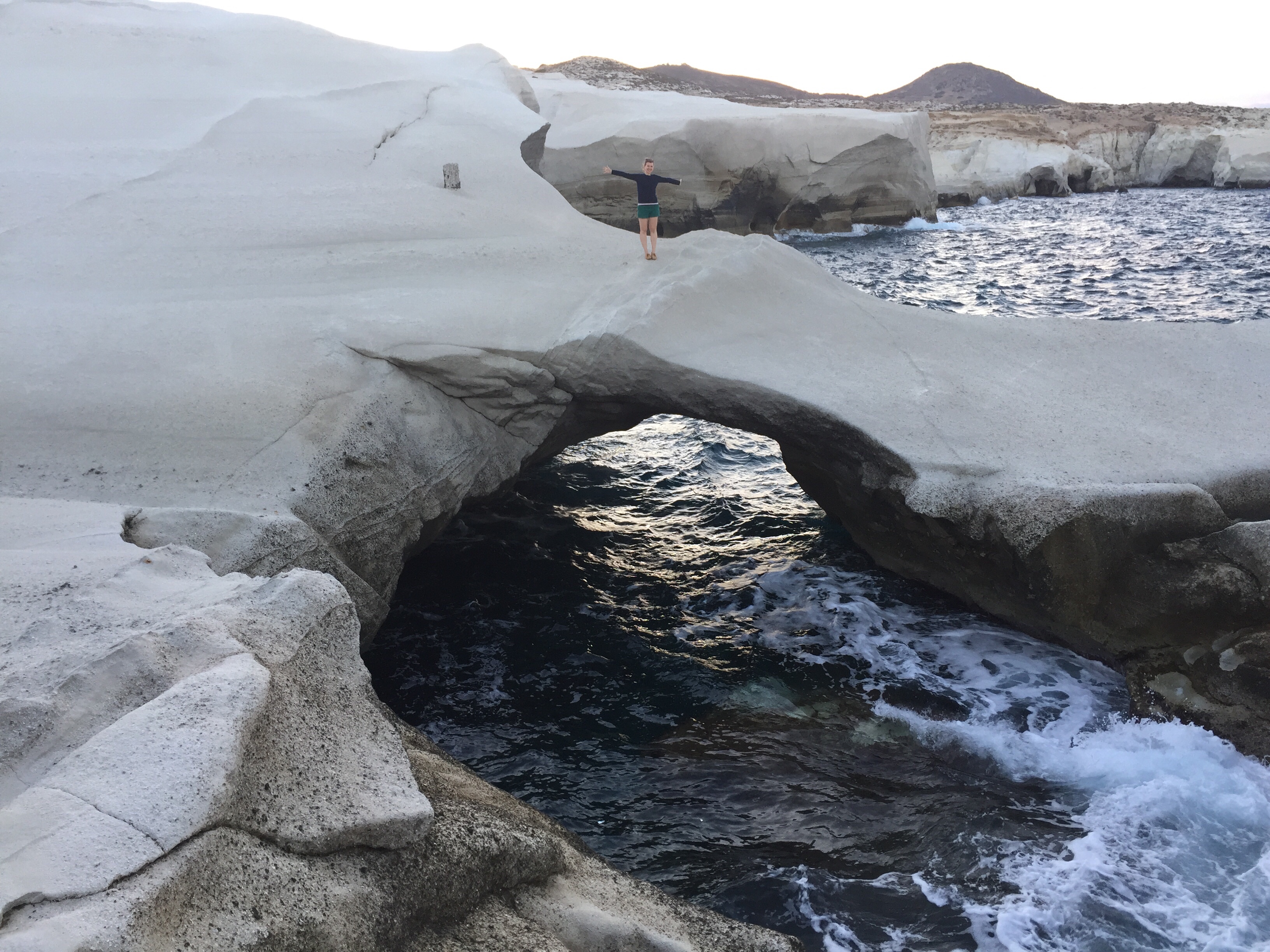 With a little sustenance, we were ready to explore, so we headed out to Sarakiniko Beach, which was actually the main reason we chose Milos in the first place—I had seen some photos of the beach and had been taken with how completely different and strange this beach looked. The beach did not disappoint IRL (that’s “in real life,” if you’re wondering!):