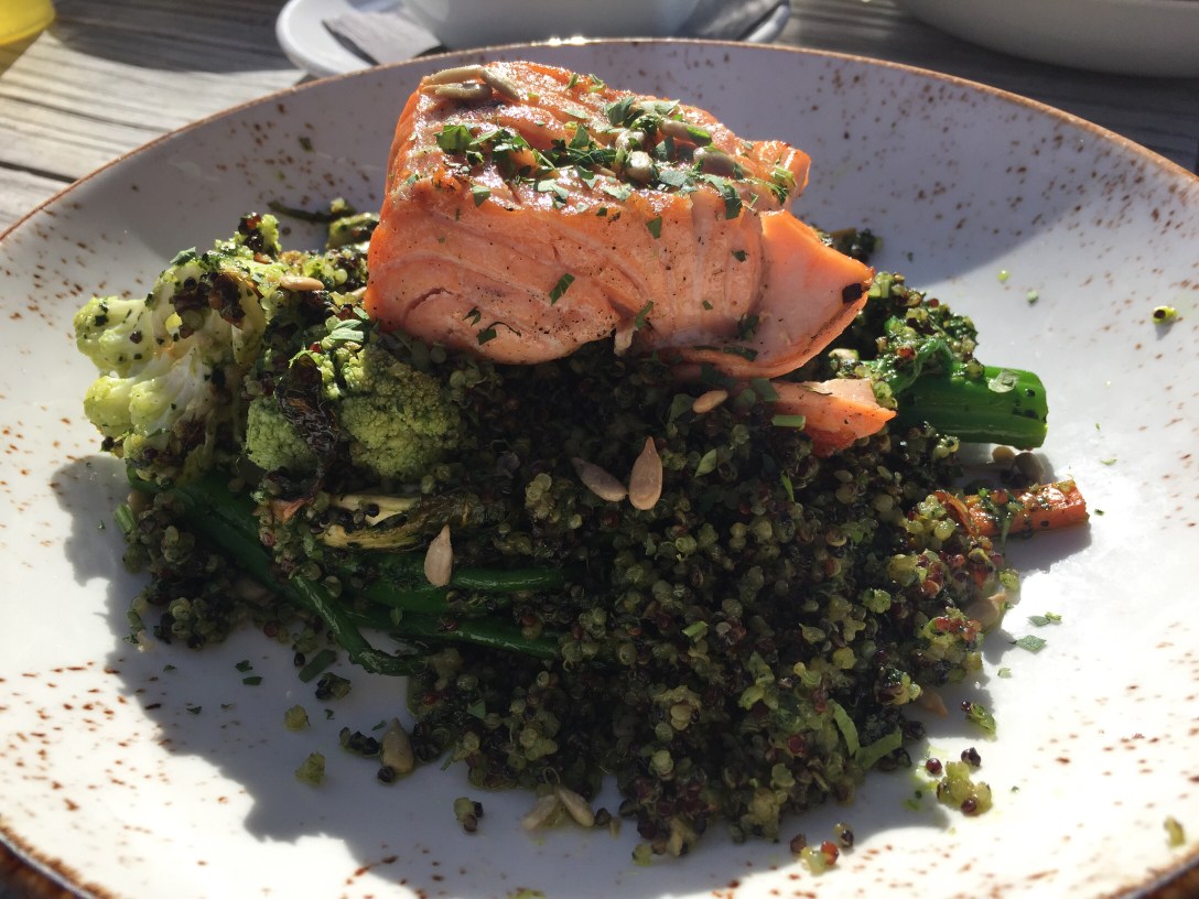 Wild salmon with quinoa and roasted veggies at Farm & Craft: