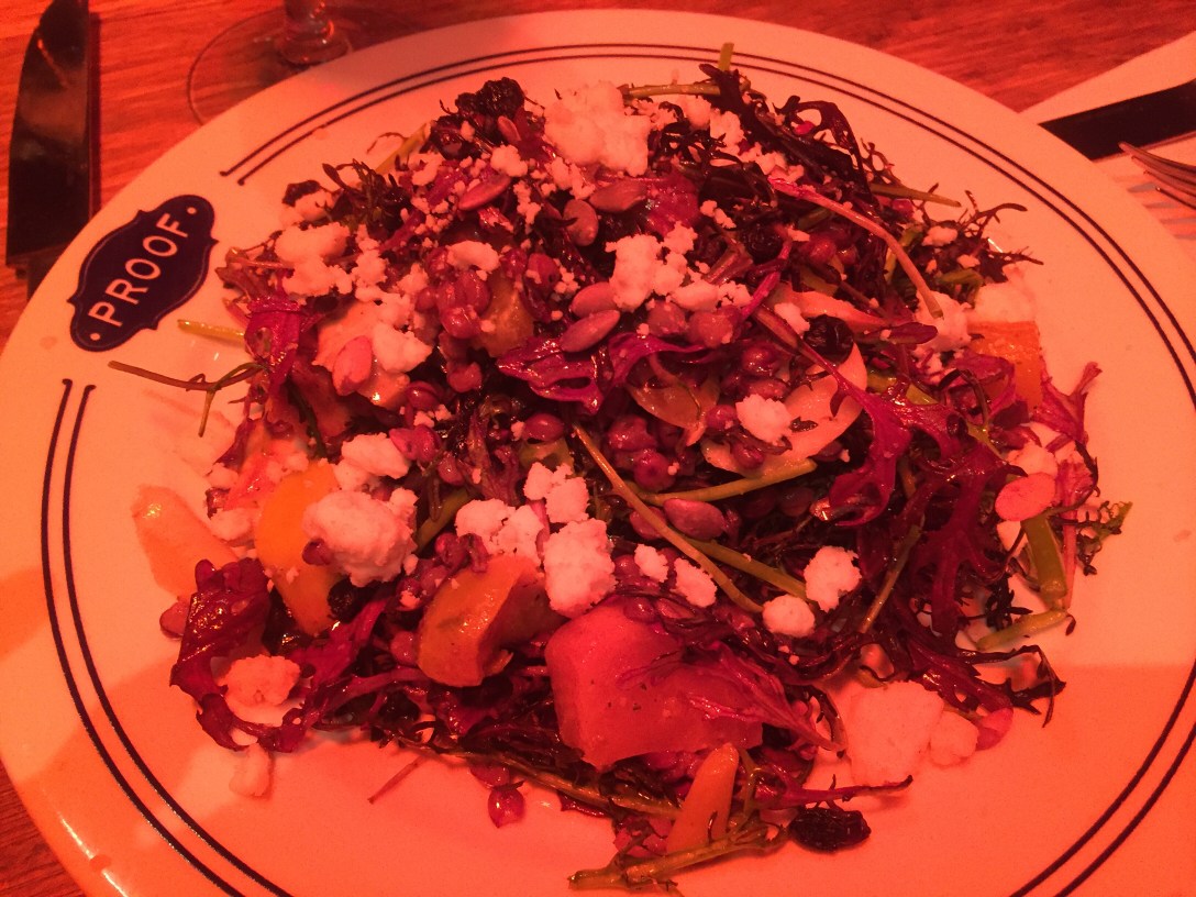 Seasonal salad at Proof Canteen (we were sitting outside under heat lamps which is why the photo is red!):