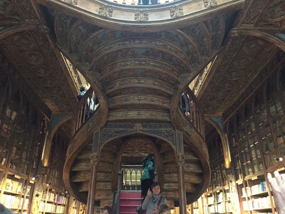 Where I left off last week, I think we were eating pastries and drying out from being drenched during a thunderstorm. Andrew and I weren’t ready to let a bit of rain stop us from exploring more of Porto, so after warming up, we walked over to Livraria Lello, where J.K. Rowling got a lot of her inspiration for the Hogwarts School in her Harry Potter books. The bookstore was beautiful, but I have to say that it was so overrun with people that I had a hard time enjoying myself. I did buy a Portuguese cookbook there, so something came out of the experience!