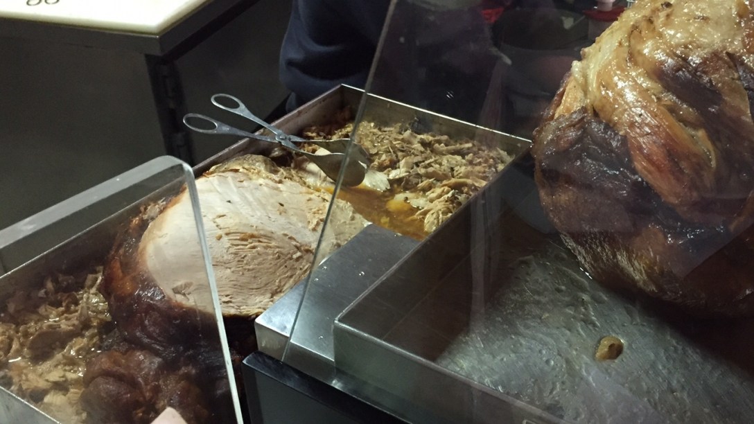 We had a late lunch at A Casa Guedes, and this was hands down our favorite meal of the entire trip. The restaurant specializes in roasted pork sandwiches, which are SO tasty! The pork is carved from a giant hunk of meat behind the counter: