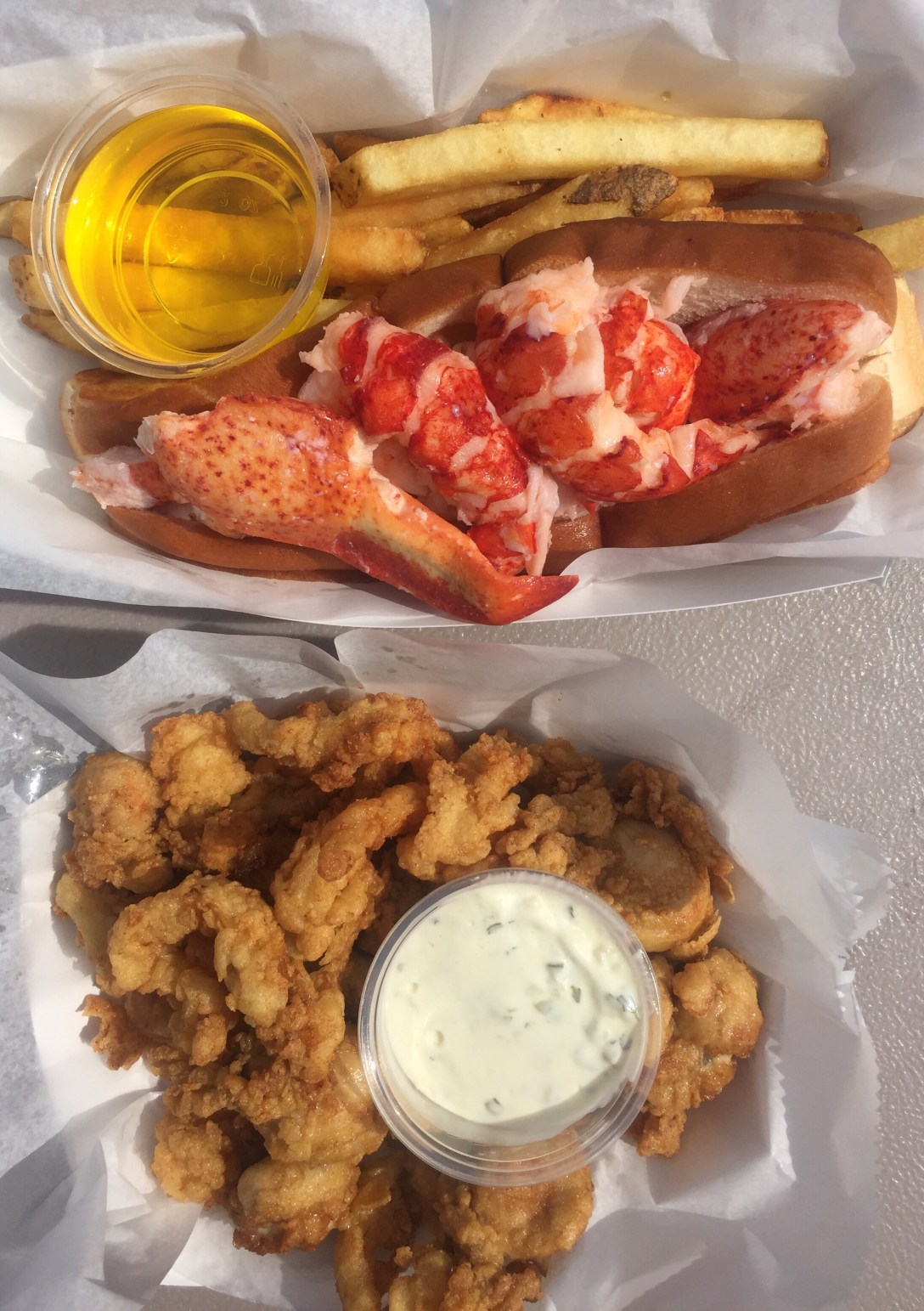 I love a good lobster roll with mayonnaise, but I think they are even better with drawn butter. This one included an entire lobster and was one of the best I’ve had. The clam bellies were great too, and our bellies were extra round after eating a few too many of them!