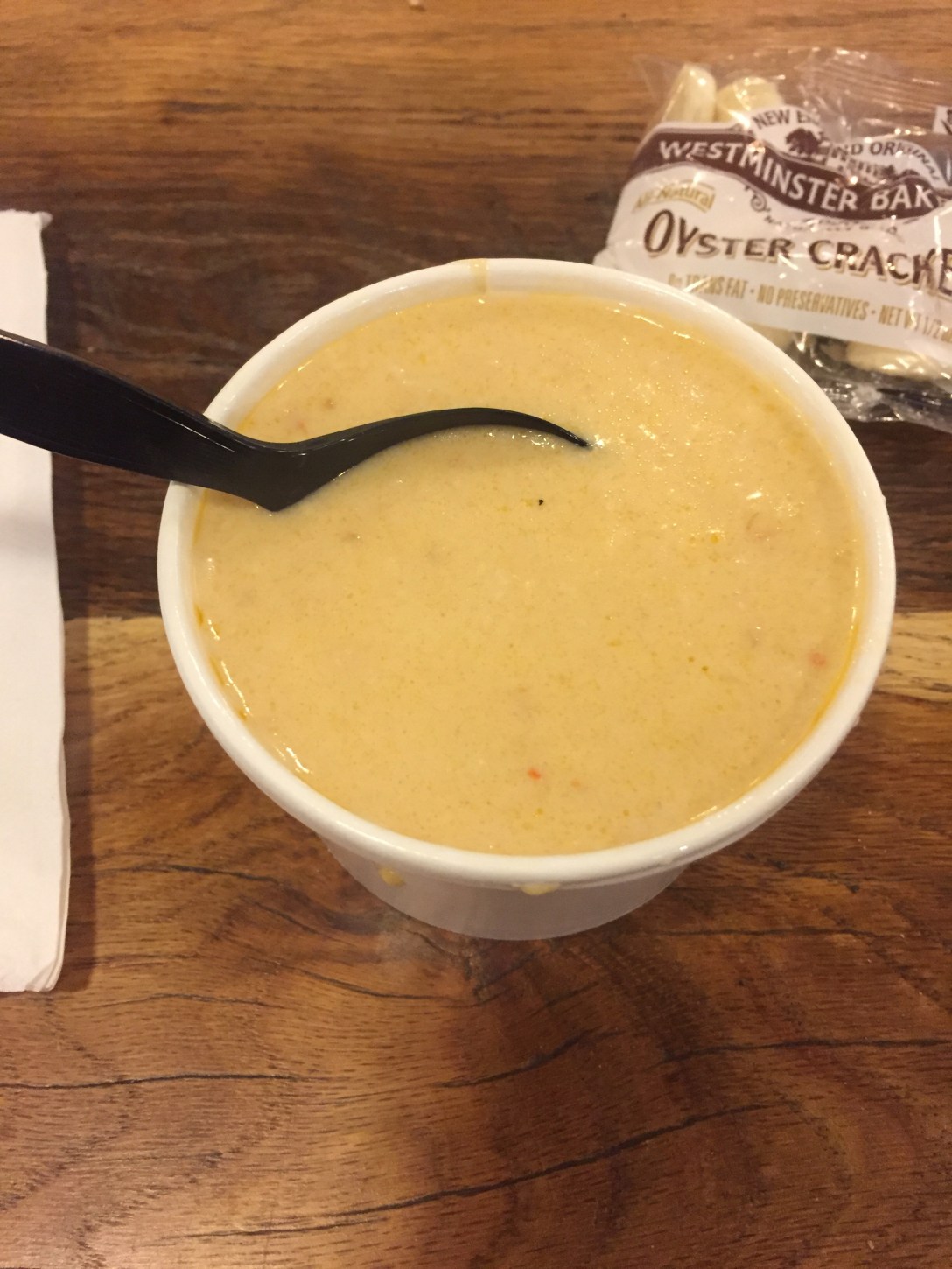 I had some creamy lobster bisque and half of a lobster roll from Red’s Best—yum!