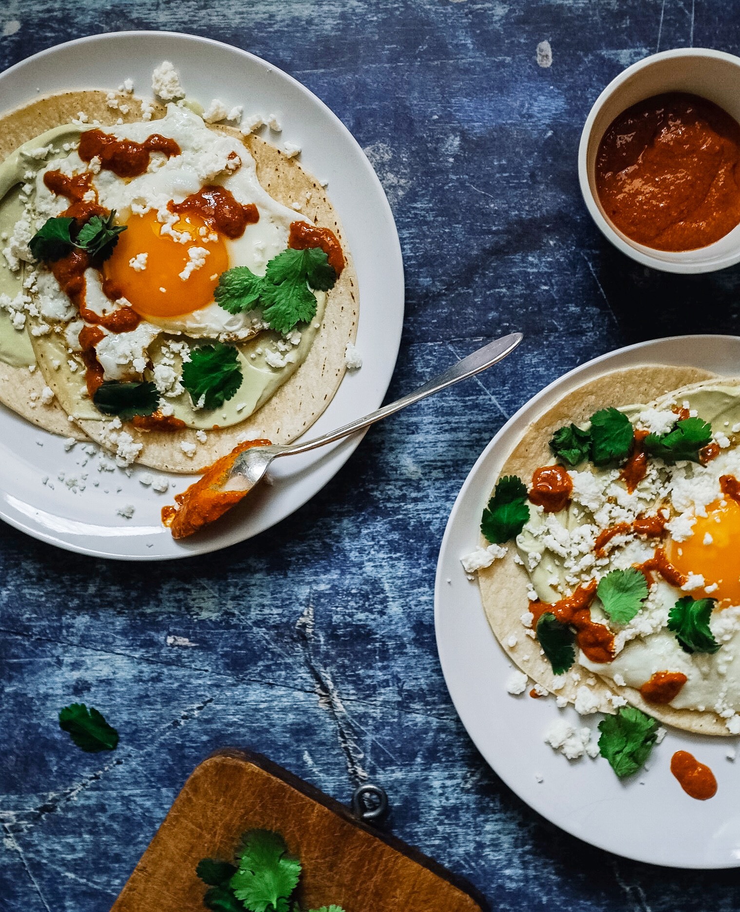 Earlier this week I made the salsa macha recipe from Nopalito, a cookbook I’ve really been enjoying recently. The leftover salsa was excellent along with some avocado mayo on our breakfast tacos this morning. (I’m including the salsa macha and avocado mayo recipes below). To make the tacos, just fry an egg and put that on corn tortillas along with the avocado mayo, salsa macha, some cilantro, and queso fresco.