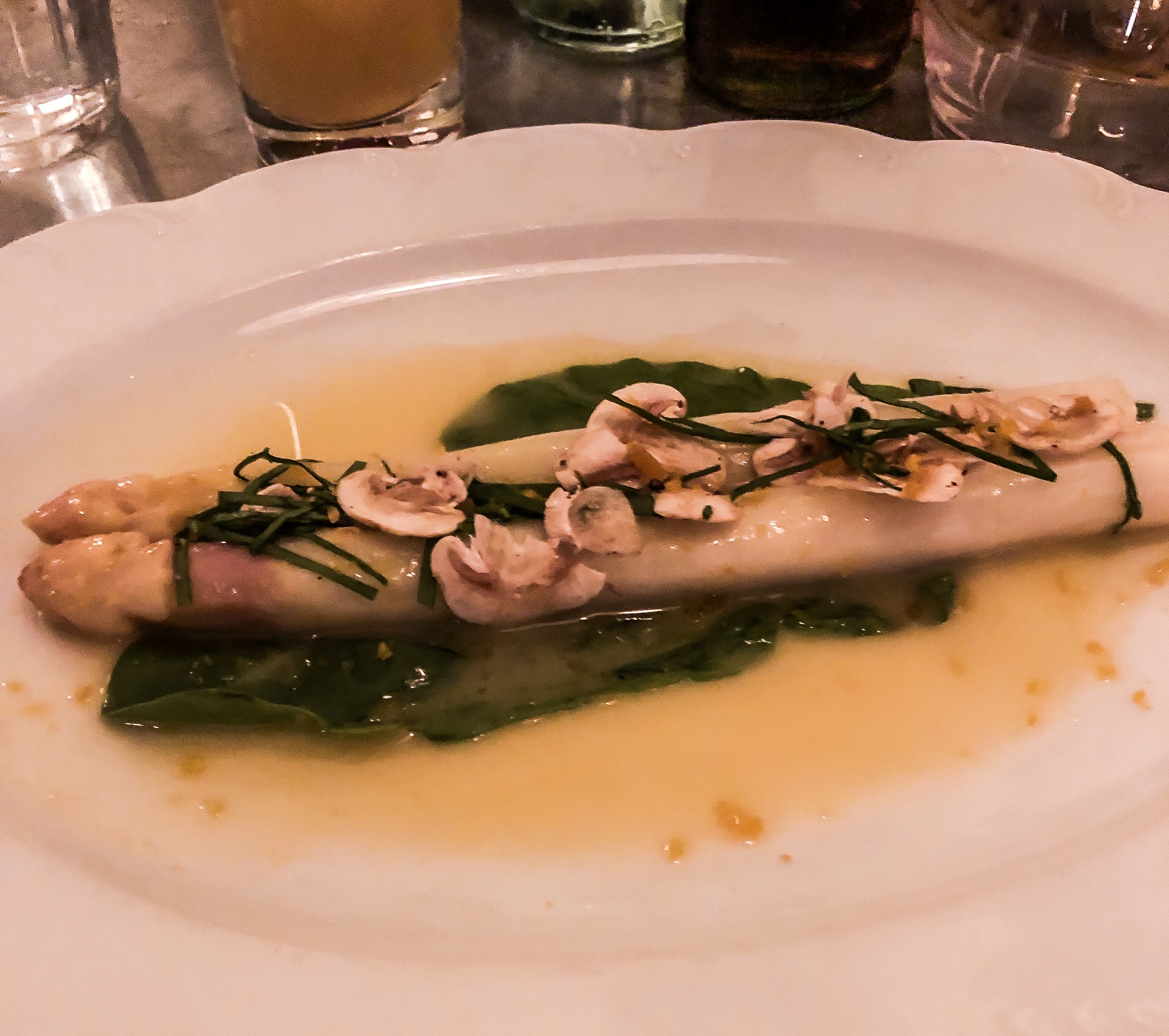 Fortified, we walked over to Chelsea Market for window shopping and tasting a few samples. From there we took another LONG walk to Tribeca to have an early dinner at Frenchette. It was our first time there, and it was (pricy but) delicious! We sat a the bar and got the duck frites + white asparagus and marinated leeks and I tried a natural garnacha blend.