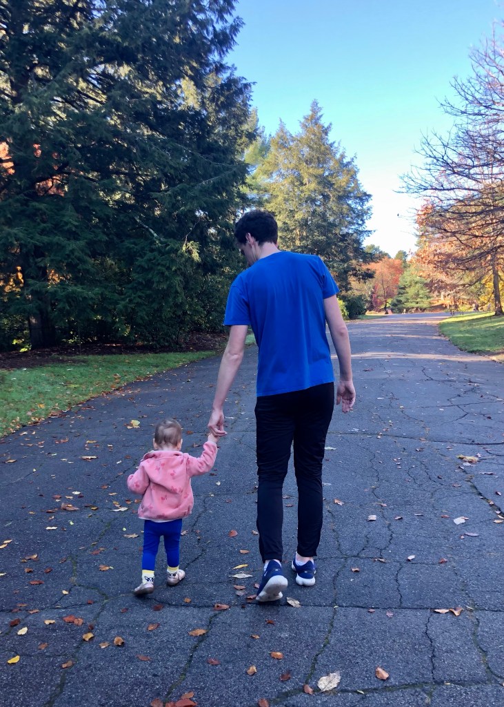 We’ve been lucky enough to have warmish weather for jogging, and I’m determined to bundle up and continue to exercise outdoors through the winter. Eek. Not content just to be pushed in her stroller anymore, Olive now requests to “alk,” so we take some breaks for that. 🙂
